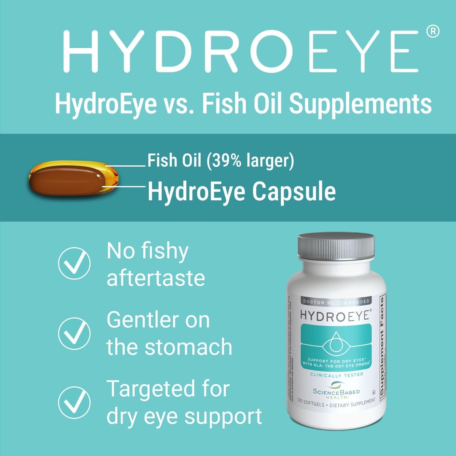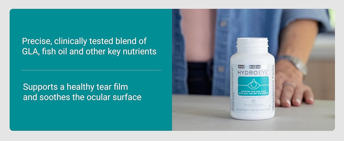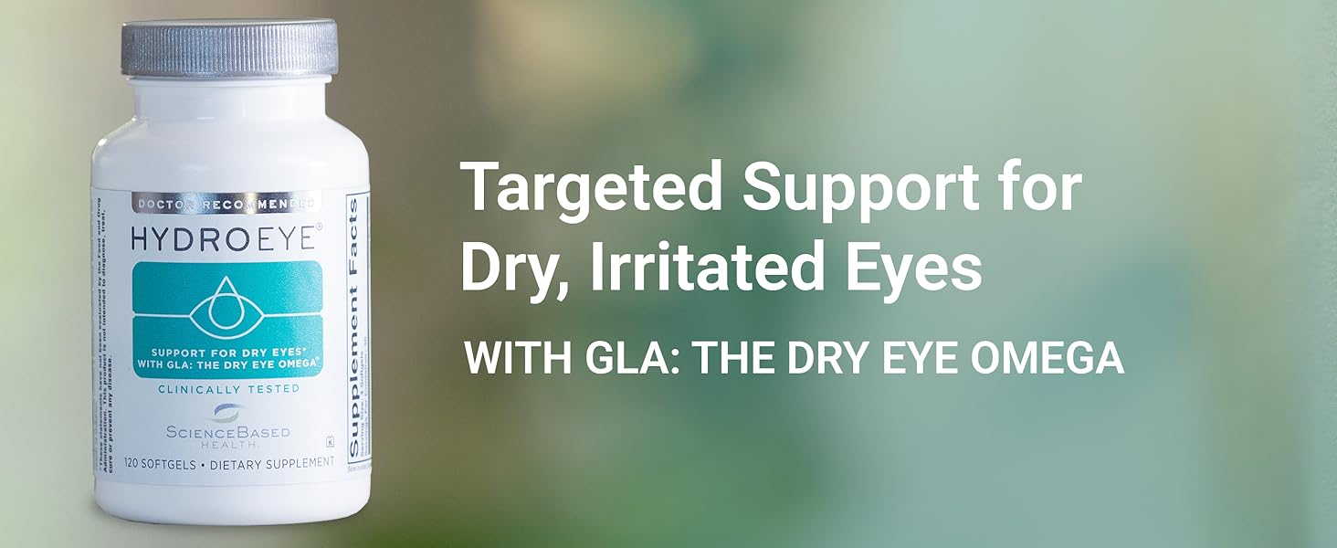 HvdroEye's unique, atented formulation features a balanced blend of omega fatty acids, which have been well established to provide support for dryeves as well as other heath benefts, GLA, a key omega fat in HvdroEve, has been wel studied and safely used for over 20 vears. GLA has gainedattention in recent vears for it's role in dampening infammation, an underlving cause of dry eve, Read about studies on GLA for dry eves .HydroEvealso contains omega-3 EPA and DHA from the highest quality,USp-verifed fsh oi.EPA and DHA provide additional anti-inflammatory support as welas benefts for macular and heart health. HydroEye has also been found to raise levels of lactoferrin in LAslK patients. Read summary of study.Additionally, HydroEye provides antioxidants and other key nutrients that support all 3 layers of the tear flm.
